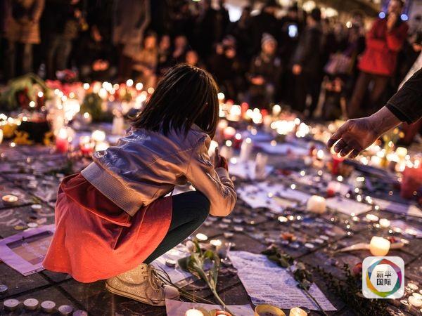 布魯塞爾市中心廣場,女孩點燃悼念蠟燭。(圖片來源:新華/美聯(lián))
