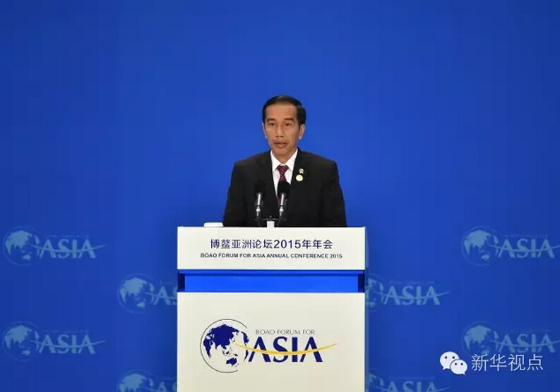 ??? 印尼的獨(dú)特之處在于,它是G20中唯一的東南亞成員,參與了歷次G20峰會(huì)。中國和印尼在加強(qiáng)和改進(jìn)國際經(jīng)濟(jì)治理方面,擁有相近立場(chǎng)和廣泛共同利益。 出席博鰲亞洲論壇2015年年會(huì)的佐科總統(tǒng)↓