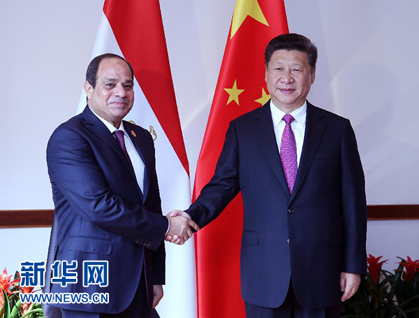 習(xí)近平強(qiáng)調(diào),中方高度重視中埃關(guān)系。我們堅定支持埃及維護(hù)國家穩(wěn)定,自主探索符合本國國情的發(fā)展道路,愿同埃方繼續(xù)在涉及彼此核心關(guān)切的問題上相互支持。要將兩國經(jīng)貿(mào)合作落到實處,推動重點合作項目早日實施,加強(qiáng)產(chǎn)能、金融、民生、環(huán)保、基礎(chǔ)設(shè)施領(lǐng)域合作,密切在國際和地區(qū)事務(wù)中的協(xié)調(diào)和配合。雙方要以兩國建交60周年為新起點,推動中埃關(guān)系不斷得到新的更大發(fā)展。