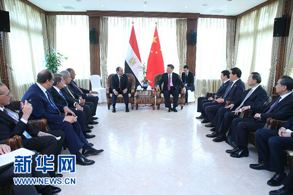 9月4日,國家主席習(xí)近平在杭州會見在華出席二十國集團(tuán)領(lǐng)導(dǎo)人杭州峰會的埃及總統(tǒng)塞西。 新華社記者 姚大偉 攝