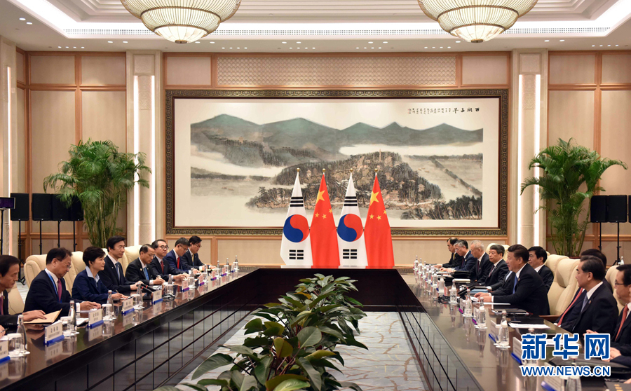 兩國元首還就朝鮮半島形勢交換了看法。習近平指出,中方始終致力于實現半島無核化目標,致力于維護半島和平穩(wěn)定。半島問題最終還是要通過對話協(xié)商加以解決。我們應該堅持六方會談平臺,通過全面均衡解決各方關切,爭取標本兼治,實現半島長治久安。我們反對美國在韓國部署“薩德”反導系統(tǒng)。這個問題處理不好,不利于地區(qū)戰(zhàn)略穩(wěn)定,會加劇各方矛盾。樸槿惠表示愿就有關問題同中方保持密切溝通。