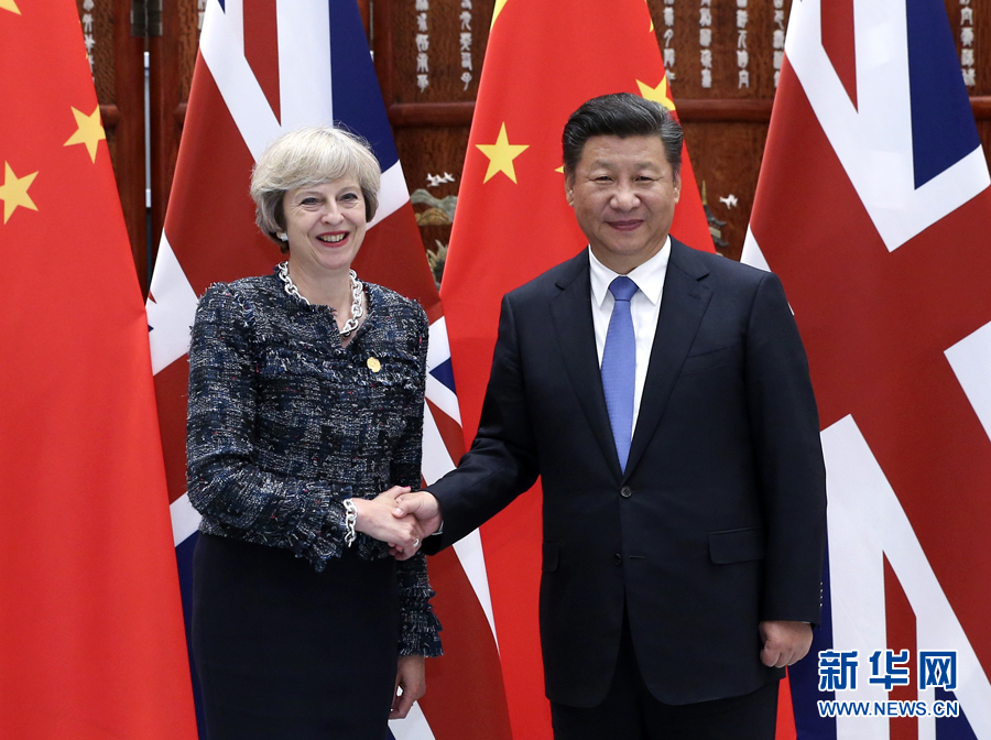 9月5日,國家主席習(xí)近平在杭州會見來華出席二十國集團領(lǐng)導(dǎo)人峰會的英國首相特雷莎·梅。 新華社記者龐興雷攝