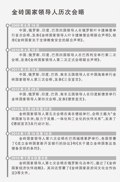 金磚國(guó)家領(lǐng)導(dǎo)人第八次會(huì)晤將于10月15日至16日在印度果阿舉行。10年來(lái),金磚國(guó)家已發(fā)展成為新興市場(chǎng)和發(fā)展中國(guó)家合作的重要平臺(tái),在帶動(dòng)全球經(jīng)濟(jì)增長(zhǎng)、完善全球治理、推動(dòng)國(guó)際關(guān)系民主化等方面發(fā)揮了重要作用,給各國(guó)人民帶來(lái)了實(shí)實(shí)在在的好處