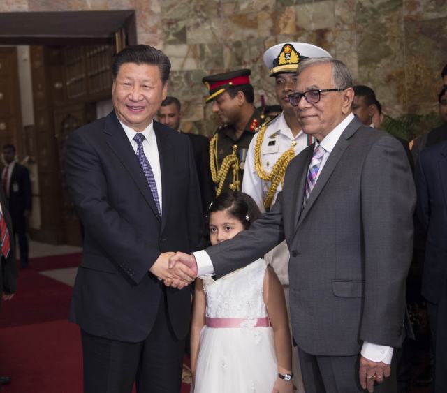 【中孟兩國(guó)友誼代代相傳再寫佳話】14日中午,習(xí)近平主席抵達(dá)孟加拉國(guó)首都達(dá)卡,在機(jī)場(chǎng)受到熱烈歡迎。哈米德總統(tǒng)親自到機(jī)場(chǎng)迎接,并帶來(lái)自己的小孫女向習(xí)主席獻(xiàn)上鮮花。無(wú)獨(dú)有偶,1956年,周恩來(lái)總理訪問(wèn)孟加拉國(guó)時(shí),孟加拉國(guó)國(guó)父拉赫曼帶著女兒向周總理獻(xiàn)花。當(dāng)年那位獻(xiàn)花的小姑娘正是現(xiàn)在的孟加拉國(guó)總理哈西娜。習(xí)主席深情地對(duì)孟加拉國(guó)領(lǐng)導(dǎo)人說(shuō):“這是中孟兩國(guó)友誼代代相傳的佳話?!?/p>