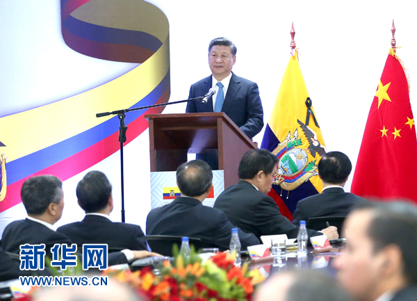 習近平在致辭中指出,中厄友誼源遠流長。近年來,雙邊友好關系實現(xiàn)了全面發(fā)展,并剛剛升級為全面戰(zhàn)略伙伴關系。兩國能夠加強合作,得益于雙方對發(fā)展前景的堅定信心,對互為發(fā)展機遇的清晰認知。當前,中國和厄瓜多爾深化互利共贏合作恰逢其時。中方愿同厄方深化合作、攜手發(fā)展,共同譜寫兩國全面戰(zhàn)略伙伴關系新篇章。