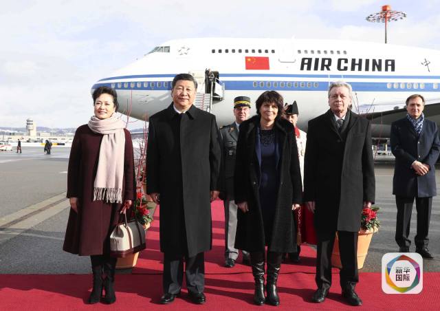 1月15日,國(guó)家主席習(xí)近平乘專(zhuān)機(jī)抵達(dá)蘇黎世,開(kāi)始對(duì)瑞士聯(lián)邦進(jìn)行國(guó)事訪問(wèn)。這是習(xí)近平和夫人彭麗媛步出艙門(mén)。(新華社記者饒愛(ài)民攝)