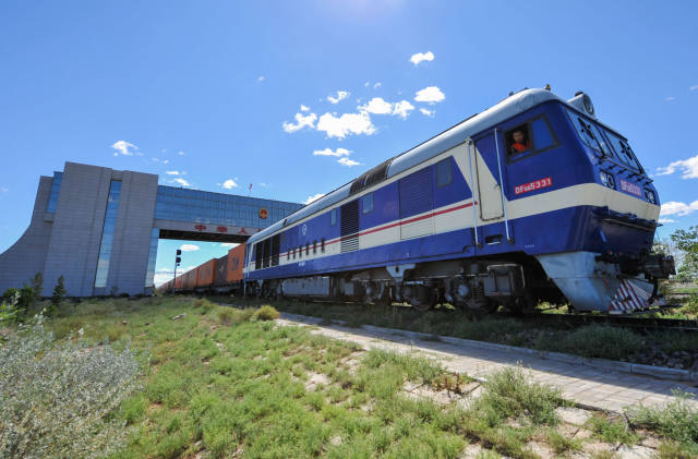 2016年8月27日,一列中歐班列貨運列車駛出二連浩特國門。(新華社記者 連振攝)