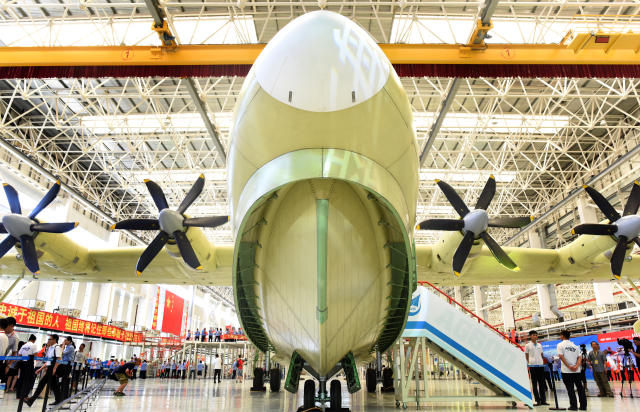 2016年7月23日,大型滅火/水上救援水陸兩棲飛機AG600在廣東珠??傃b下線。(新華社記者 盧漢欣攝)