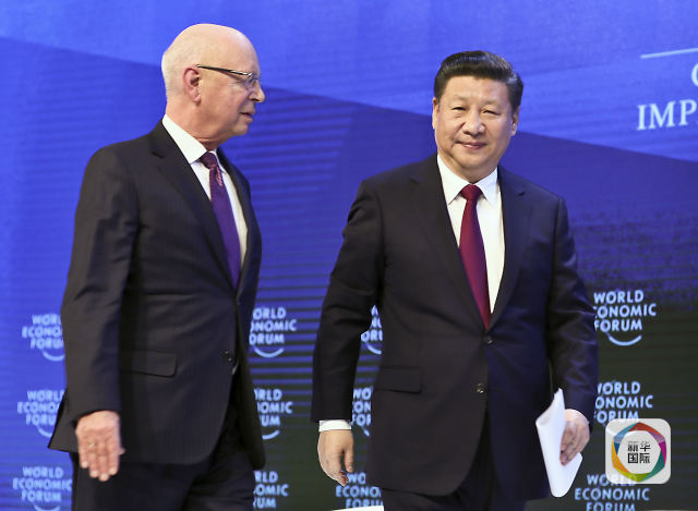 1月17日,國家主席習(xí)近平在瑞士達(dá)沃斯國際會議中心出席世界經(jīng)濟(jì)論壇2017年年會開幕式,并發(fā)表題為《共擔(dān)時(shí)代責(zé)任 共促全球發(fā)展》的主旨演講。這是習(xí)近平同世界經(jīng)濟(jì)論壇創(chuàng)始人兼執(zhí)行主席施瓦布在一起。新華社記者蘭紅光攝