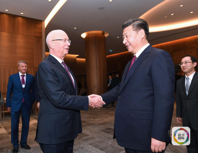 1月17日,國家主席習(xí)近平在瑞士達(dá)沃斯會見世界經(jīng)濟(jì)論壇主席施瓦布。新華社記者饒愛民攝