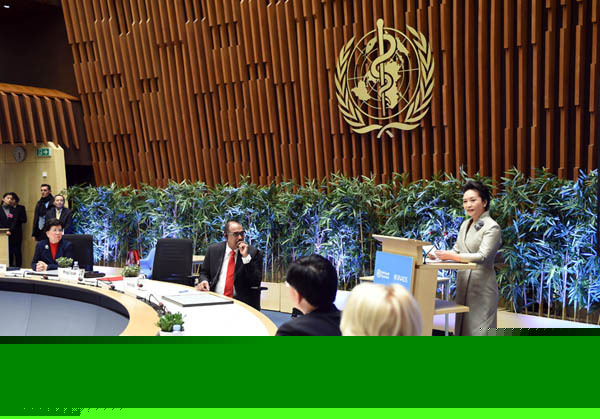 1月18日,國(guó)家主席習(xí)近平夫人、世界衛(wèi)生組織結(jié)核病和艾滋病防治親善大使彭麗媛應(yīng)世界衛(wèi)生組織總干事陳馮富珍和聯(lián)合國(guó)艾滋病規(guī)劃署執(zhí)行主任西迪貝邀請(qǐng),在瑞士日內(nèi)瓦出席為她舉行的親善大使任期續(xù)延暨頒獎(jiǎng)儀式。這是彭麗媛在儀式上致辭。新華社記者謝環(huán)馳攝