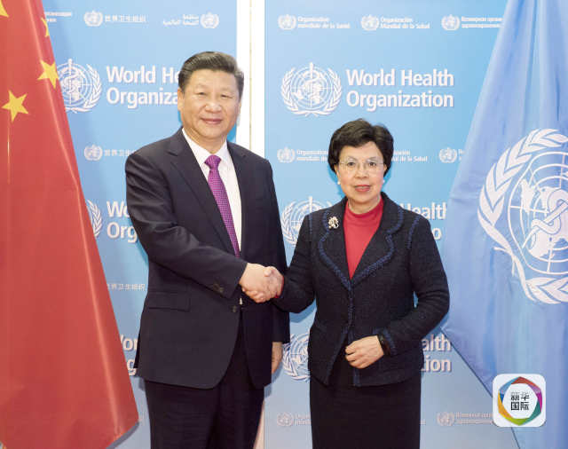 1月18日,國家主席習近平在瑞士日內瓦訪問世界衛(wèi)生組織并會見陳馮富珍總干事。(新華社記者李學仁攝)