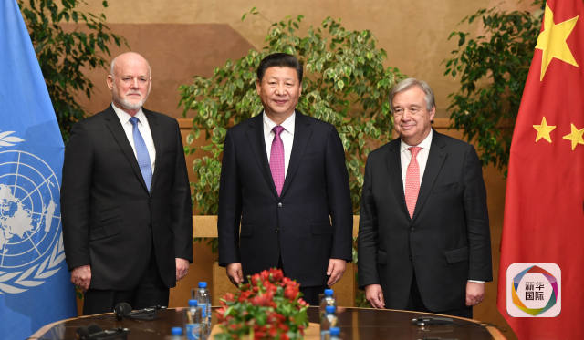 離開世界衛(wèi)生組織總部,習主席來到萬國宮瑞士廳,同第71屆聯大主席湯姆森和聯合國秘書長古特雷斯舉行會見。這也是古特雷斯今年1月正式履新聯合國“掌門人”后,習主席和他的第一次會面。
