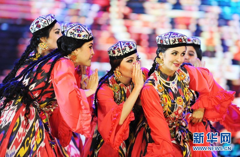 1月18日晚,烏茲別克斯坦首都塔什干人民友誼宮,烏茲別克斯坦舞蹈演員在表演中烏傳統(tǒng)舞蹈。