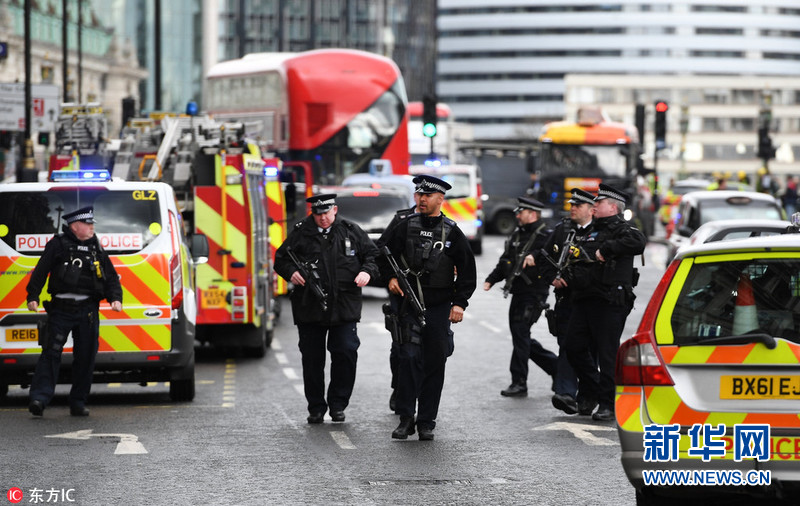 當(dāng)?shù)貢r(shí)間2017年3月22日,英國(guó)倫敦,英國(guó)威斯敏斯特議會(huì)大廈附近發(fā)生襲擊事件,威斯敏斯特橋上有車輛沖撞行人;另外有持刀歹徒攻擊議會(huì)大廈執(zhí)勤警察后被擊斃,報(bào)道稱多人受傷。襲擊發(fā)生后,議會(huì)大廈臨時(shí)關(guān)閉,英國(guó)議會(huì)下院的會(huì)議暫停。倫敦警方目前暫時(shí)將此事作為恐怖事件處理。據(jù)外媒報(bào)道,英國(guó)警方封閉了倫敦議會(huì)大廈周邊的街道。圖片來(lái)源:東方IC