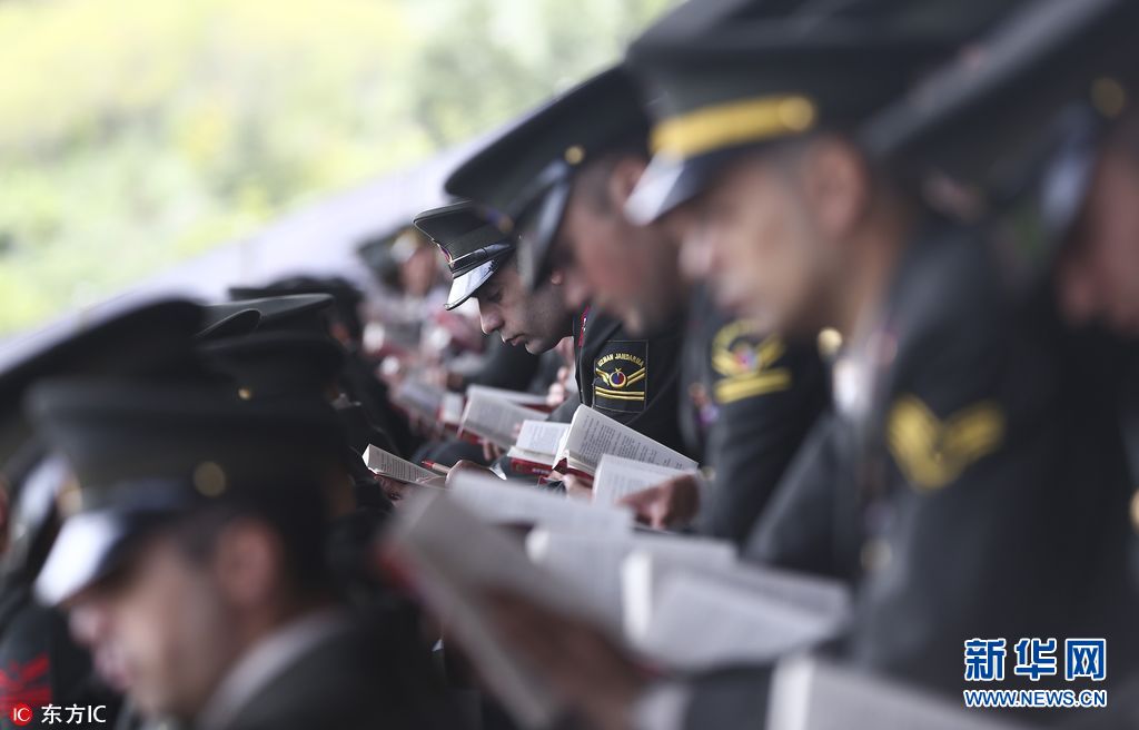 當?shù)貢r間2017年5月18日,土耳其安卡拉,在憲兵和海岸警衛(wèi)學院體育場,土耳其憲兵參加集體讀書活動,打破“最多人一起讀書”吉尼斯紀錄,慶祝憲兵部成立178周年。包括土耳其憲兵、海岸警衛(wèi)隊及其家人在內(nèi)等5754人參加了這一集體活動。(圖片來源:東方IC)