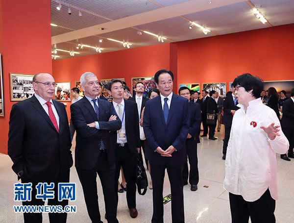 6月7日,金磚國家媒體聯(lián)合攝影展在北京中國國家博物館開幕,由金磚五國主流媒體共同提供的170余幅圖片與公眾見面,全面展示了金磚國家合作的豐碩成果。這是新華社社長蔡名照與嘉賓參觀展覽。新華社記者 金良快 攝