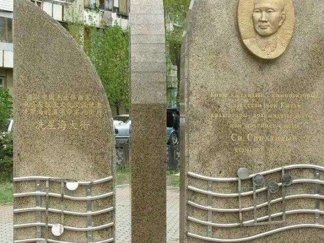 哈薩克斯坦阿拉木圖市冼星海大街上的冼星海紀念碑。