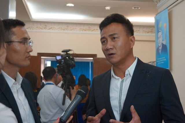 主演胡軍在接受哈薩克斯坦媒體采訪。