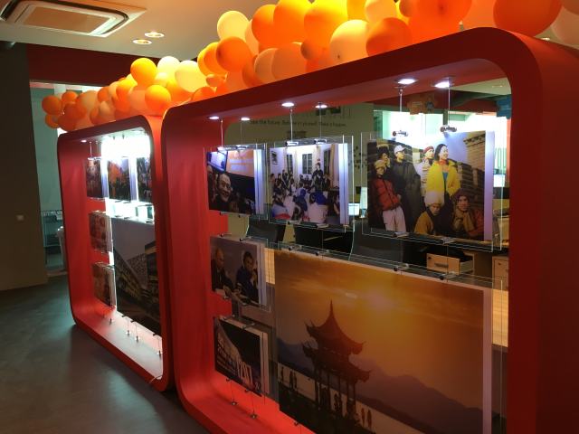 一進門,記者就看到一面紅框照片墻,馬云和普京在圣彼得堡經(jīng)濟論壇上的合影非常醒目。在明亮的落地窗前,“雙十一”的紅色標(biāo)志讓記者恍惚回到了中國。