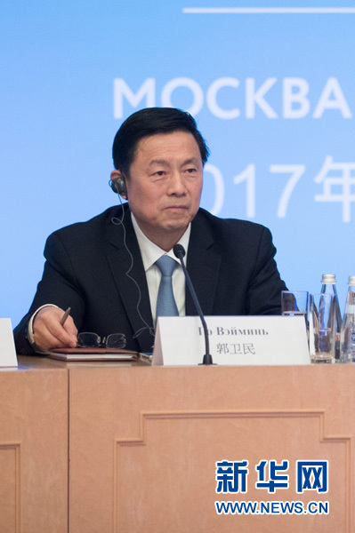7月4日,國務(wù)院新聞辦副主任郭衛(wèi)民在第三屆中俄媒體論壇上聆聽報告。新華社記者 吳壯 攝