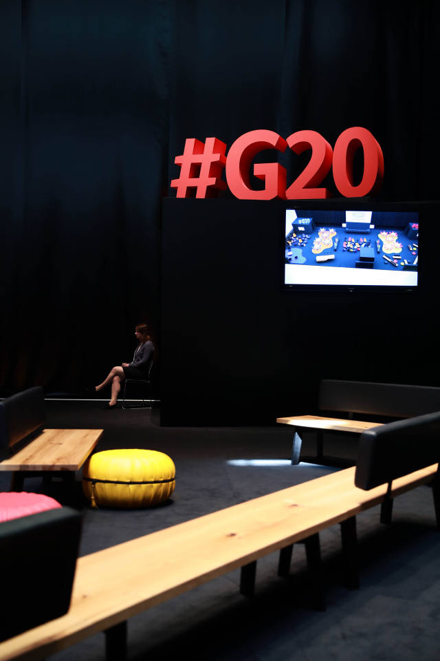 ↑這是7月6日在德國漢堡拍攝的G20領(lǐng)導(dǎo)人峰會國際新聞中心一景。新華社記者羅歡歡攝