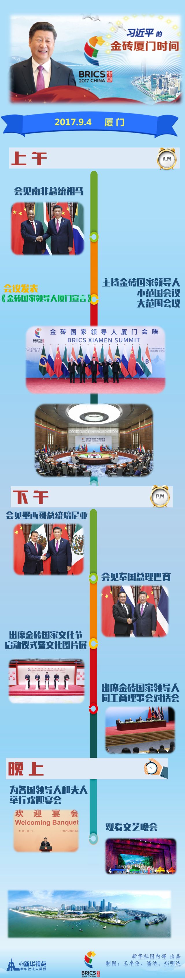 廈門,顧名思義是“大廈之門”。我衷心希望廈門會(huì)晤為我們開啟新的合作之門、發(fā)展之門,迎來金磚合作第二個(gè)“金色十年”,開辟新興市場國家和發(fā)展中國家光明未來。