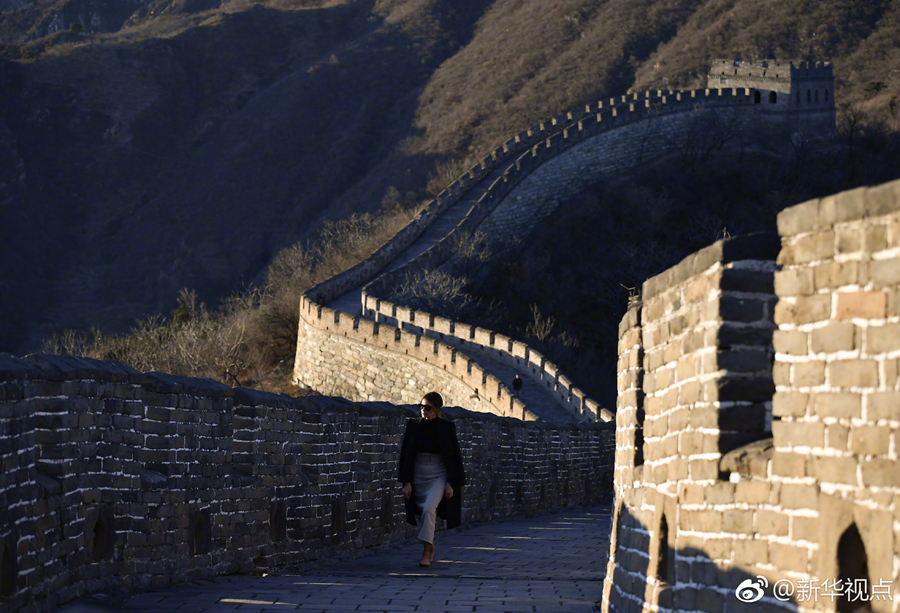 新華網(wǎng)北京11月10日電 11月10日下午,美國(guó)總統(tǒng)特朗普夫人梅拉尼婭登上慕田峪長(zhǎng)城,獲贈(zèng)“好漢證書”。北風(fēng)雖然凜冽,但蜿蜒的長(zhǎng)城氣勢(shì)磅礴,引得梅拉尼婭流連忘返。(記者朱超、燕雁 據(jù)新華社“新華視點(diǎn)”微博報(bào)道)?????