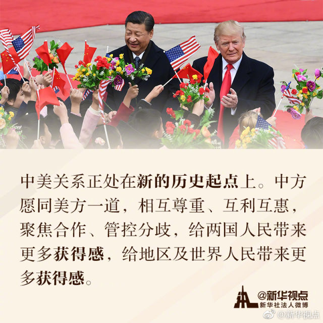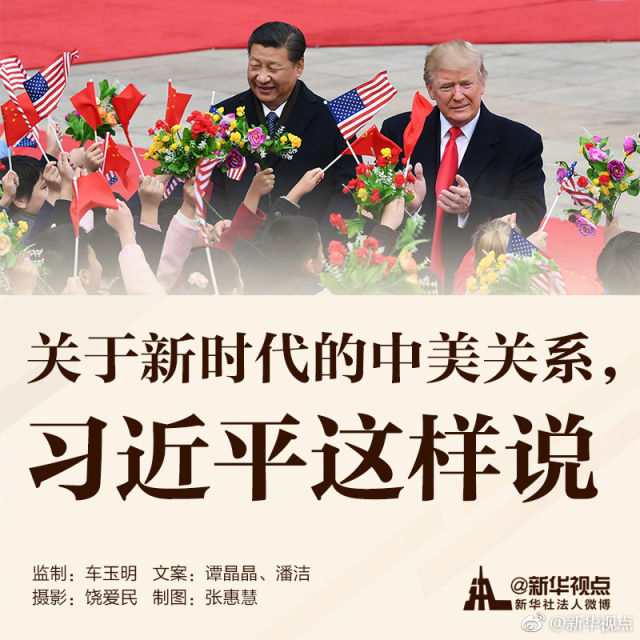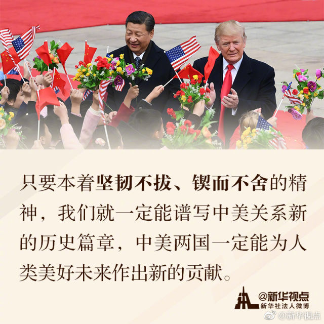 【關(guān)于新時(shí)代的中美關(guān)系,習(xí)近平這樣說(shuō)】美國(guó)總統(tǒng)特朗普訪華期間,對(duì)于新時(shí)代的中美關(guān)系,習(xí)近平主席作出了哪些重要論述?為未來(lái)中美關(guān)系發(fā)展定下了什么基調(diào)?一起來(lái)學(xué)習(xí)這些金句吧!