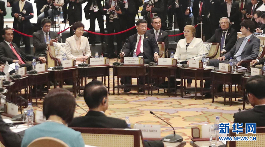 11月10日,國(guó)家主席習(xí)近平出席在越南峴港舉行的亞太經(jīng)合組織領(lǐng)導(dǎo)人與東盟領(lǐng)導(dǎo)人對(duì)話會(huì)。 新華社記者 丁林 攝