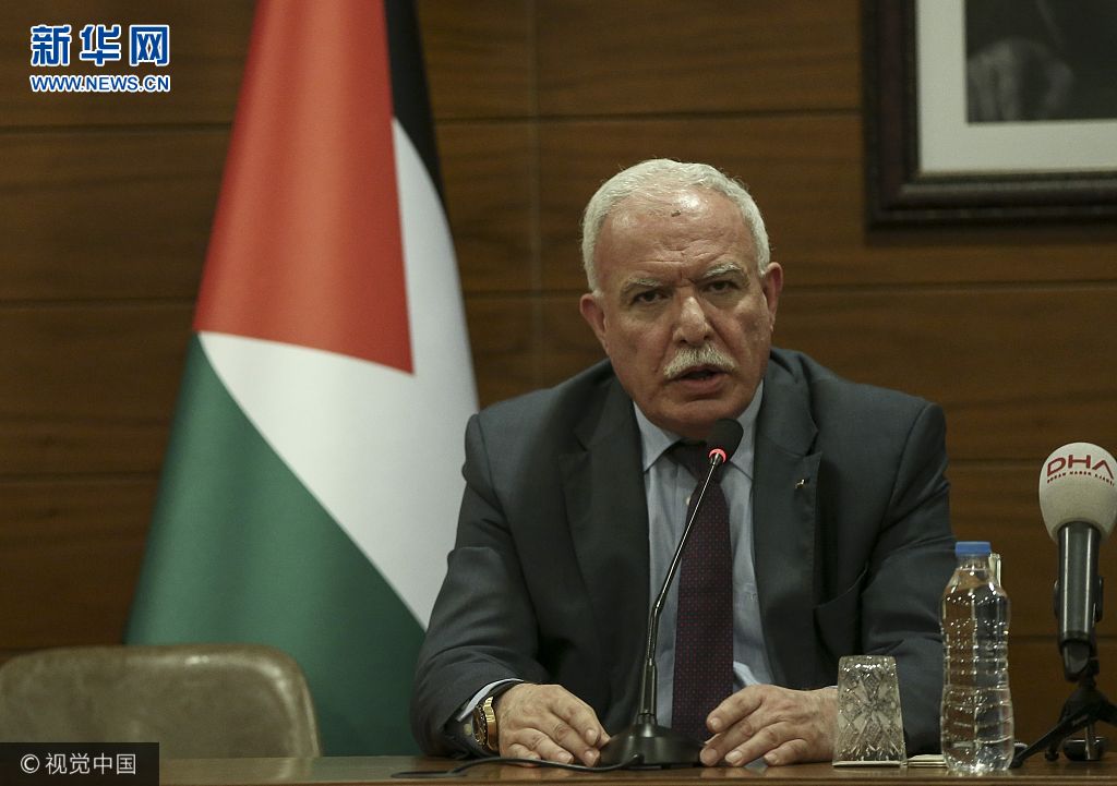 當(dāng)?shù)貢r(shí)間2017年12月20日,土耳其伊斯坦布爾,巴勒斯坦外長馬勒基出席新聞發(fā)布會(huì),呼吁聯(lián)合國大會(huì)在21日舉行的緊急會(huì)議上認(rèn)定美國承認(rèn)耶路撒冷為以色列首都的決定“無效”。(圖片來源:視覺中國)
