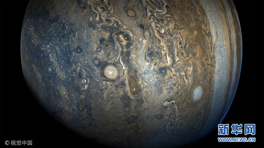 12月21日訊(具體拍攝時(shí)間不詳),這一系列由木星探測(cè)器“朱諾”號(hào)帶來(lái)的高清圖,錯(cuò)綜復(fù)雜的星云結(jié)構(gòu)看上去就像印象派大師的畫作。(圖片來(lái)源:視覺(jué)中國(guó))