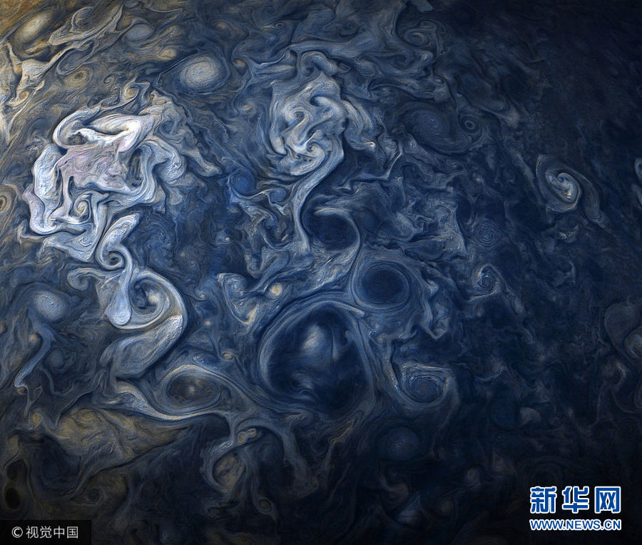 12月21日訊(具體拍攝時(shí)間不詳),這一系列由木星探測(cè)器“朱諾”號(hào)帶來的高清圖,錯(cuò)綜復(fù)雜的星云結(jié)構(gòu)看上去就像印象派大師的畫作。(圖片來源:視覺中國(guó))