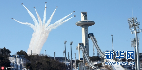 平昌冬奧會倒計時50天 韓黑鷹飛行隊在空中“畫”出奧運五環(huán)(圖)