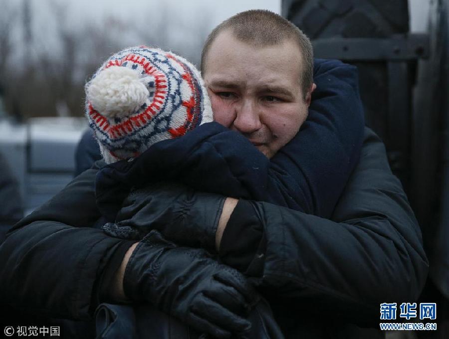 12月27日,烏克蘭哈爾科夫,獲釋戰(zhàn)俘抵達哈爾科夫。烏克蘭政府軍與東部民間武裝當日舉行了大規(guī)模的交換戰(zhàn)俘行動。(圖片來源:視覺中國)