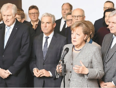 在此前的大選中,默克爾帶領(lǐng)的基民盟勝出,成為第一大黨,但它和基社盟組成的“聯(lián)盟黨”在議會(huì)中未超過半數(shù)席位,因此必須和其他黨聯(lián)合組閣。