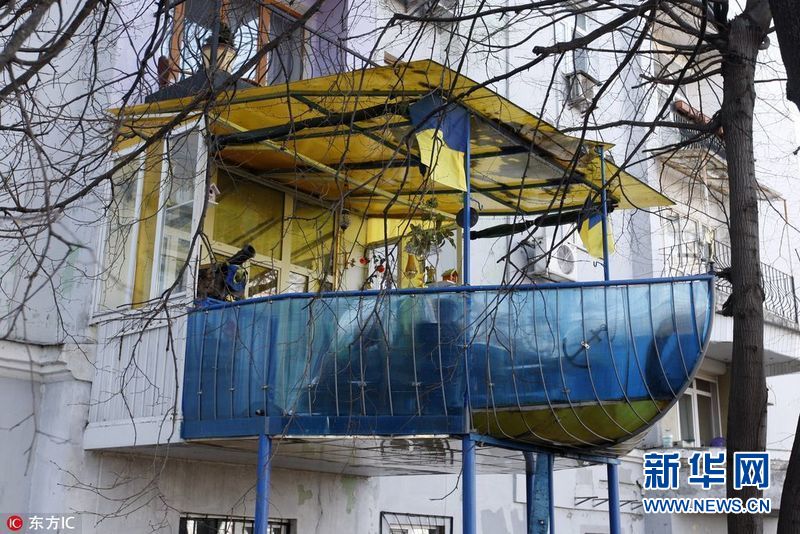 【帥!軍艦陽(yáng)臺(tái)】2017年3月30日,烏克蘭基輔,72歲的老人Olexander Shkolnik曾是一名海軍少校。退役后,老人將自家陽(yáng)臺(tái)打造成了軍艦?zāi)?,以紀(jì)念自己的海軍生涯。