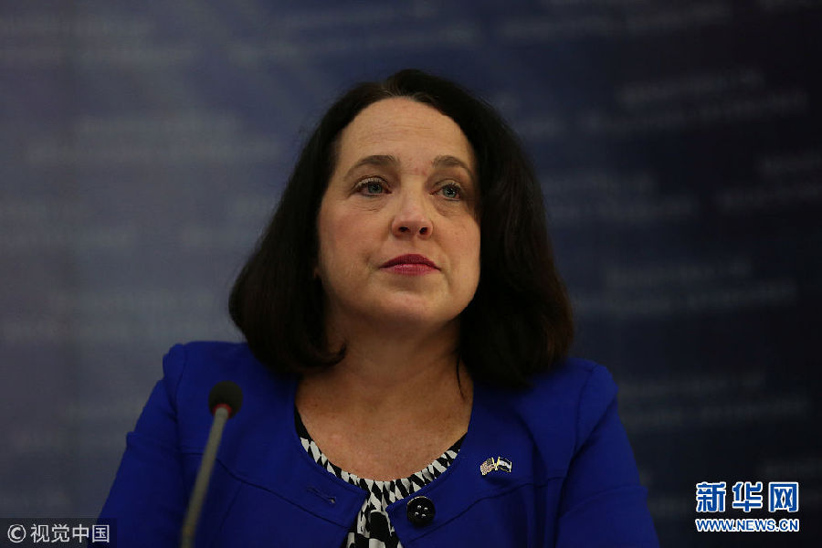 當(dāng)?shù)貢r間2018年1月8日,薩爾瓦多圣薩爾瓦多,美國駐薩爾瓦多大使Jean Manes出席新聞發(fā)布會。(圖片來源:視覺中國)