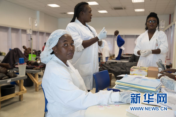 1月9日,一名醫(yī)護人員在位于國家英雄體育場的霍亂治療中心男性病房內(nèi)工作。新華網(wǎng)發(fā) (彭立軍攝)