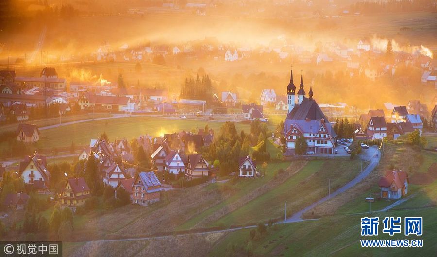 1月10日訊(具體拍攝時(shí)間不詳),波蘭皮耶尼內(nèi)山脈的一個(gè)村莊被濃霧籠罩,攝影師站在對面山上拍攝的景觀如童話世界一般,色彩繽紛的房子在濃霧中若隱若現(xiàn)仿若仙境。(圖片來源:視覺中國)