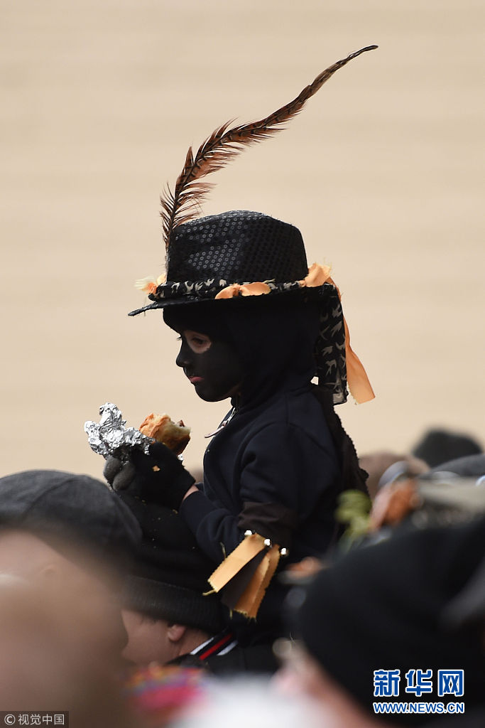 英國小鎮(zhèn)慶?!暗静菪堋惫?jié) 民眾跟隨草人盡情舞動
