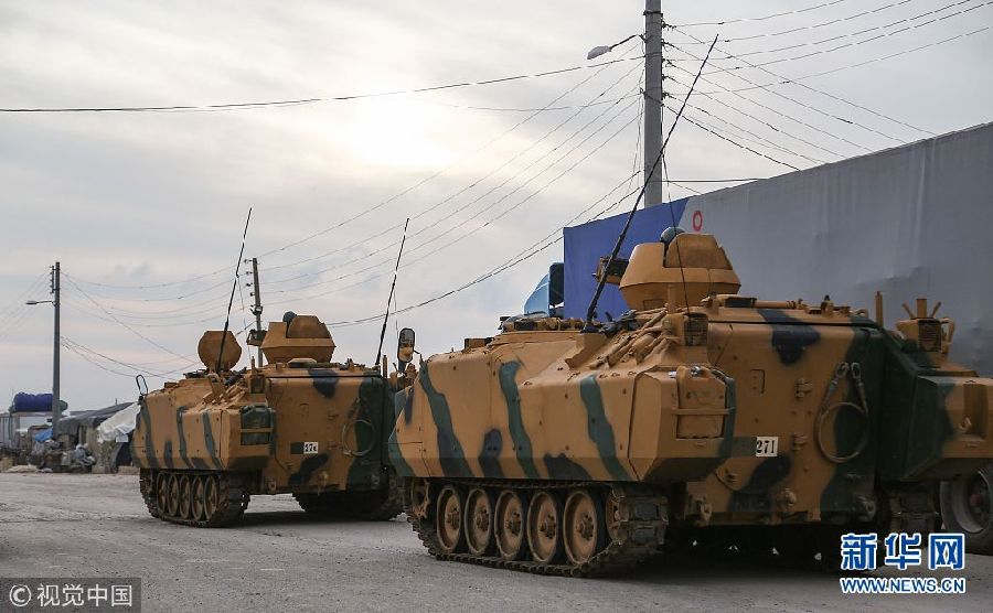當?shù)貢r間1月21日,土耳其哈塔伊省,土耳其部隊在土敘邊境哈薩鎮(zhèn)附近。(圖片來源:視覺中國)