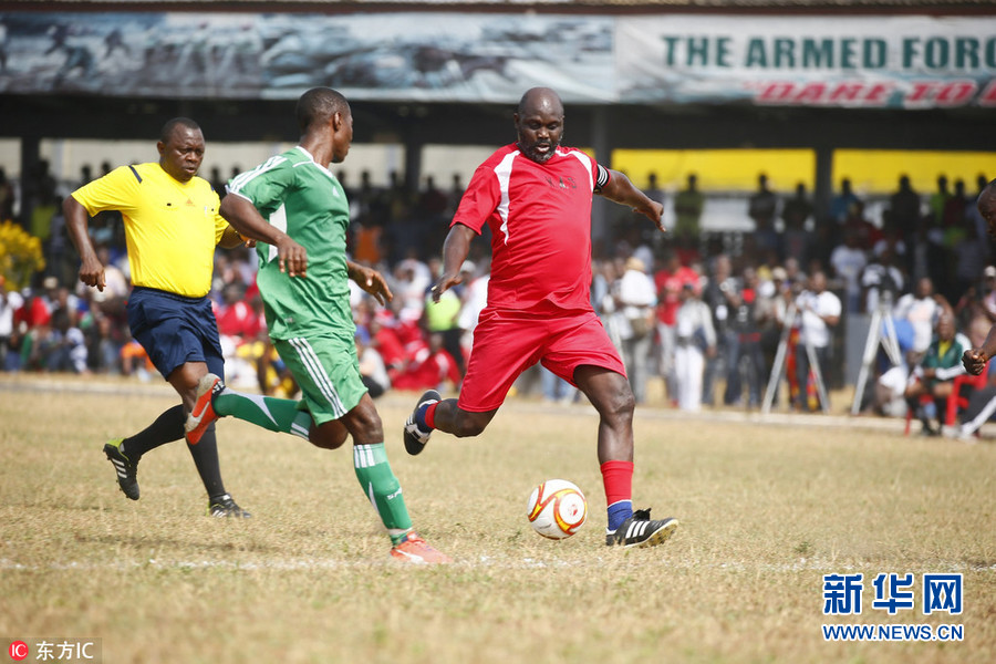 1月20日,利比里亞首都蒙羅維亞,利比里亞當選總統(tǒng)、前世界足球先生喬治-維阿參加慈善足球比賽,率領(lǐng)維阿全明星隊對戰(zhàn)利比里亞武裝部隊士兵隊。喬治-維阿在去年12月27日當選利比里亞新一任總統(tǒng),并將于2018年1月22日就職。(圖片來源:東方IC)