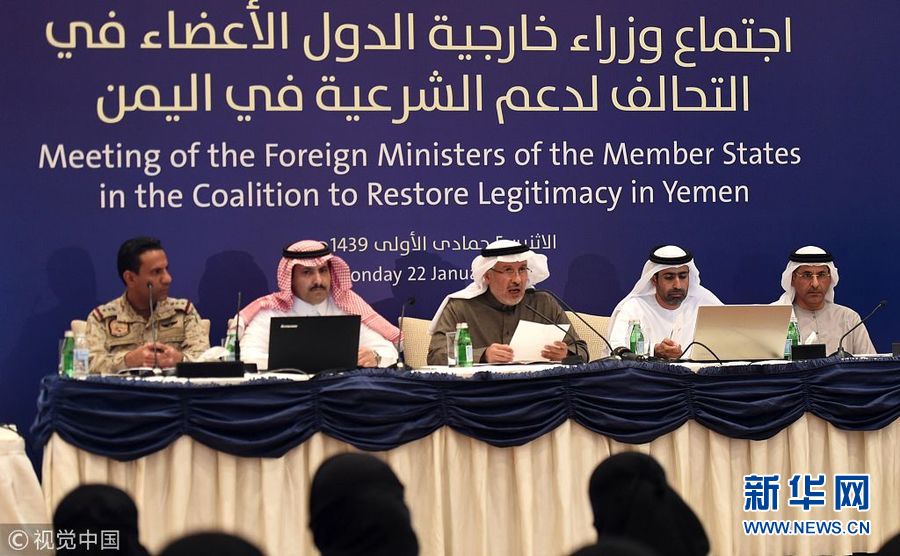 1月22日,沙特利雅得,沙特主導(dǎo)的打擊也門(mén)反政府武裝盟國(guó)舉行外長(zhǎng)會(huì)議。為緩解人道危機(jī),沙特主導(dǎo)的多國(guó)聯(lián)軍22日發(fā)表聲明說(shuō),將向也門(mén)提供15億美元的新援助。同時(shí),打開(kāi)一條通往中部馬里卜省的空中走廊以及17條陸上走廊,以運(yùn)送援助物資;增擴(kuò)也門(mén)口岸,以接收人道和基本物資。(圖片來(lái)源:視覺(jué)中國(guó))