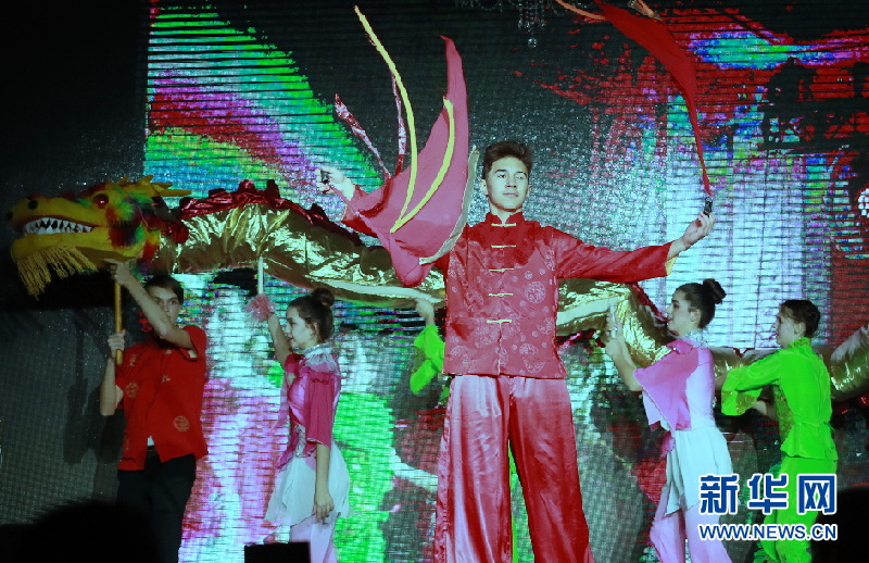 烏克蘭學(xué)生表演舞龍。新華網(wǎng)發(fā)(陳俊鋒攝)