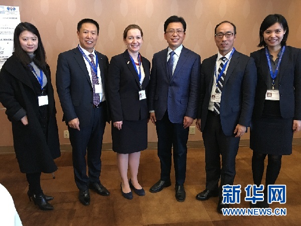中國駐舊金山副總領(lǐng)事任發(fā)強(qiáng)(右三)等與會代表合影。新華網(wǎng)發(fā)