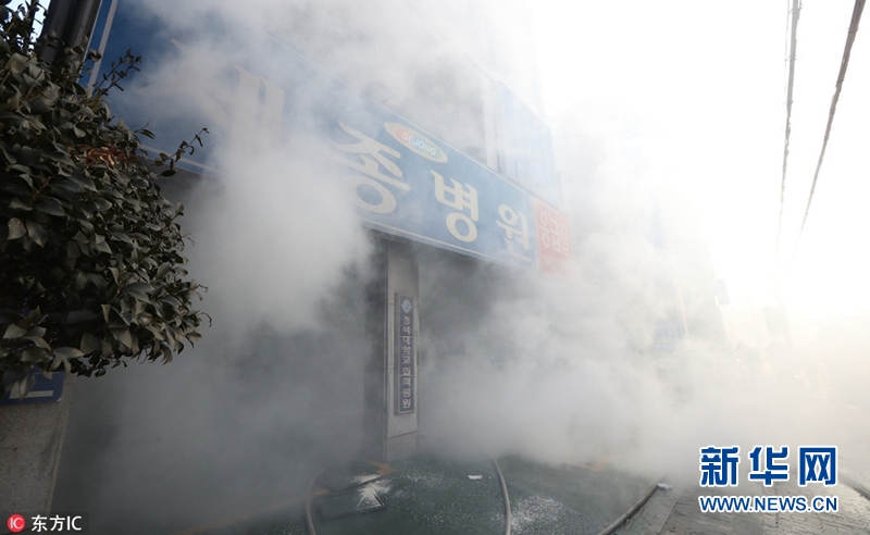 韓國慶尚南道密陽市一家醫(yī)院當(dāng)?shù)貢r間26日上午發(fā)生火災(zāi)。新華網(wǎng)發(fā)