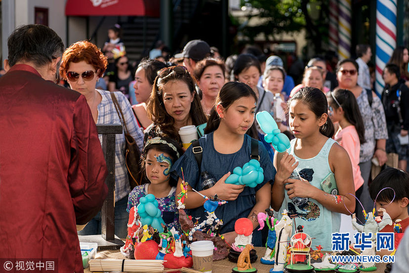 當(dāng)?shù)貢r間1月28日,美國洛杉磯,當(dāng)?shù)谿rove商場舉行少林武術(shù)表演以及其他中國文化類的演出,慶祝傳統(tǒng)新年,場外攤位還有傳統(tǒng)剪紙,捏面人,糖畫,彩繪等項(xiàng)目。圖為捏面人。(圖片來源:視覺中國)