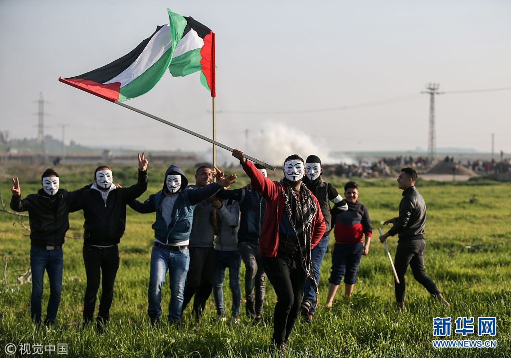當?shù)貢r間2月2日,加沙,巴勒斯坦示威者與以色列士兵發(fā)生沖突;一巴勒斯坦樂隊在沖突中開音樂會。(圖片來源:視覺中國)