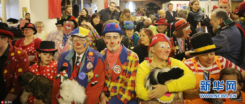 英國倫敦小丑歡聚一堂 紀念“小丑之父”